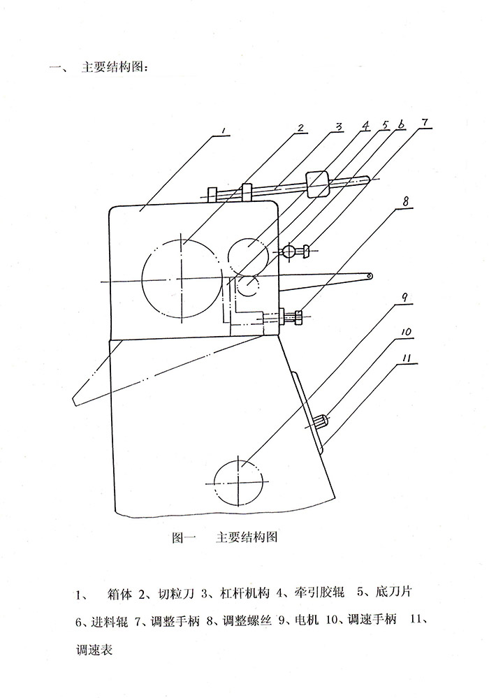 5.调整螺丝(8)用来调整底刀片(5)与切粒刀(2)的间隙(在0.06~0.12范围内),共有四个调整螺丝,其中中间两个往外拉,两边两个往里推。