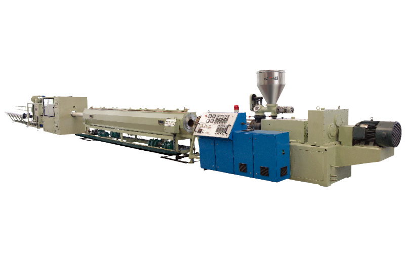 GF系列久激情内射婷内射蜜桃管材生产线主要用于生产农用给排水、建筑给排水、线缆铺设等方面的各种管径、壁厚的久激情内射婷内射蜜桃PVC管材,该机组由锥形双螺杆挤出机、真空定型台、牵引机、切割机、翻料架等组成。螺杆挤出机及牵引机采用进口交流变频调速装置,真空泵及牵引电机均采用优质产品。牵引有二爪、三爪、四爪、六爪等牵引方式。可选用锯片或行星切割形式,另可带计长及增厚装置,机组性能可靠、生产效率高。本公司可根据客户的要求,配置专用装置生产螺旋消音管和芯层发泡管机组。